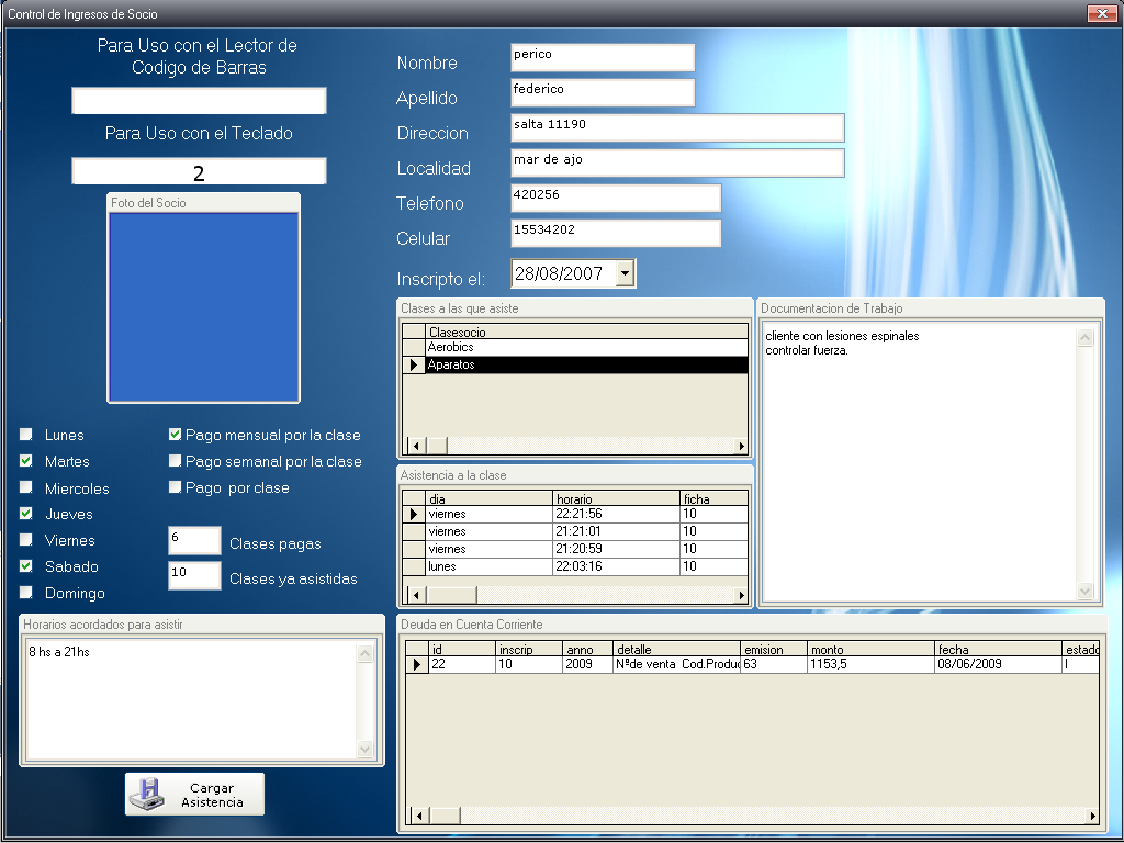 Software para academias que en esta última versión contiene, además de las funcionalidades de la versión (clientes), los módulos de cuenta corriente y compras. Este soft esta pensado como si usted mismo lo hubiera hecho.